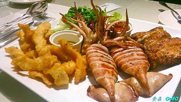 豐富的鮮烤透抽,義大利香料雞排,香酥美味鮮魚