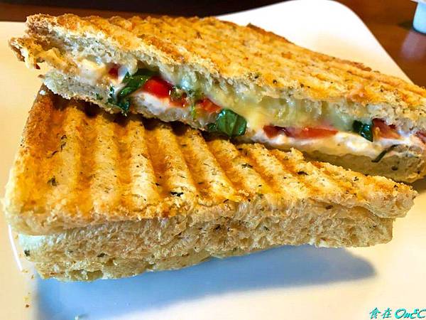 店家採用全麥吐司?下去做成的Panini~吃起來特別酥脆~