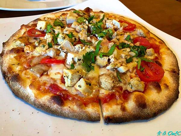 上頭的調味也很協和~蘑菇、番茄、香烤雞肉、馬芝拉起司~