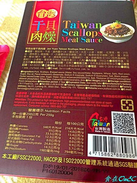 台灣干貝肉燥 Taiwan scallopes Meat Sauce (320元/盒) (一盒一包)
