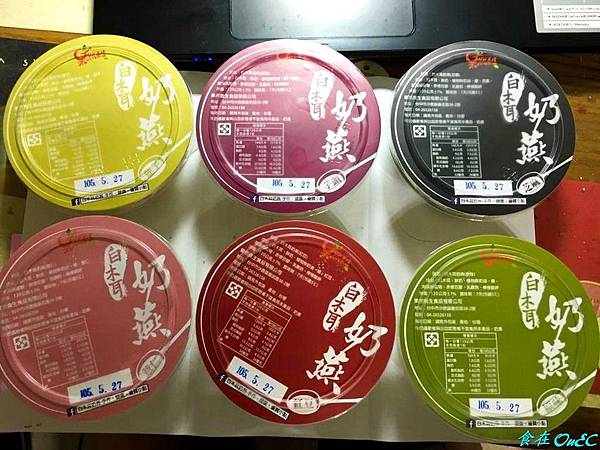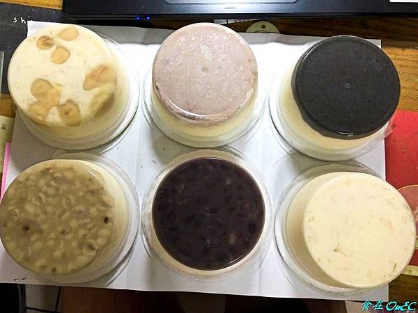 反面清楚看到滿滿的廖,左上至右下分別為簾子、芋頭、芝麻、薏仁、紅豆及原味