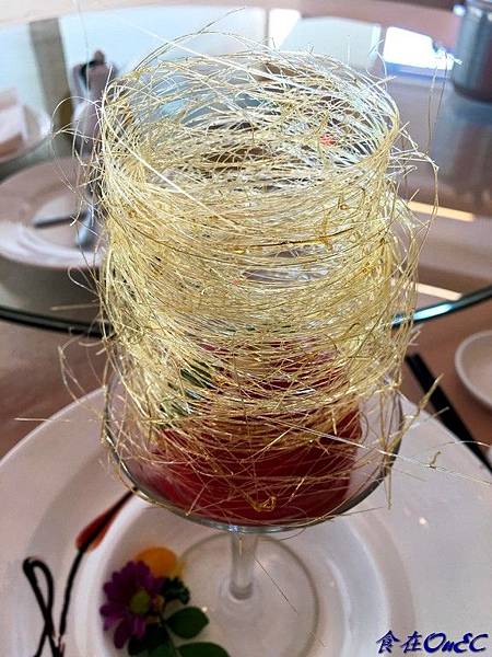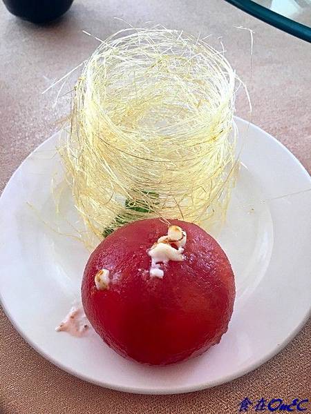 ∮糖絲的點綴不只好看,跟微酸的番茄也相搭配,