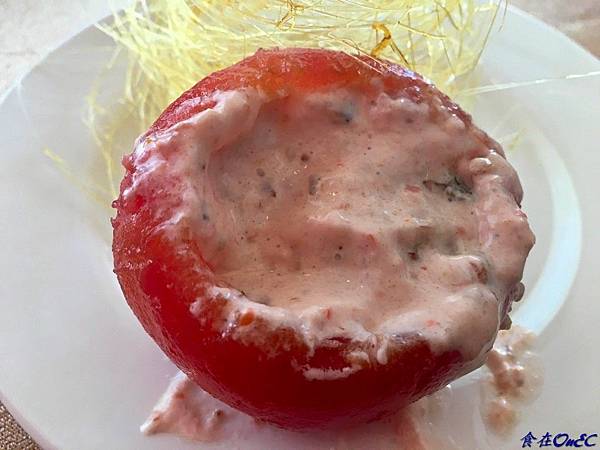海珍寶則是在挖空的番茄中藏了一些美味的料理
