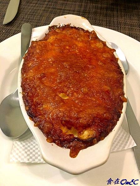 滿滿的起司撲滿烤盤上~烤的焦香~起司是越嚼越香~