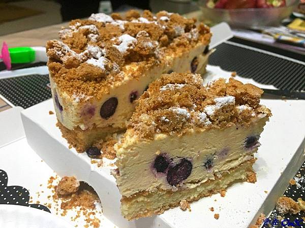 中間則是綿密的藍莓慕斯~像是起司的口感~還可以吃到完肘整的藍莓