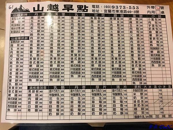 ♨ 山越早點菜單