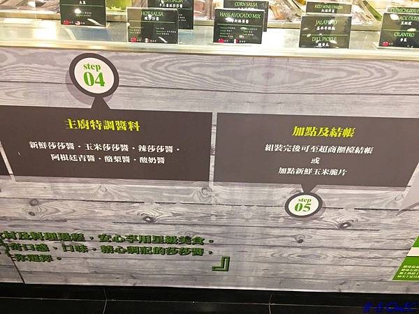 4.選用主廚特調醬料:新鮮莎莎醬、玉米莎莎醬、辣莎莎醬、阿根廷青醬、酪梨醬及酸奶醬