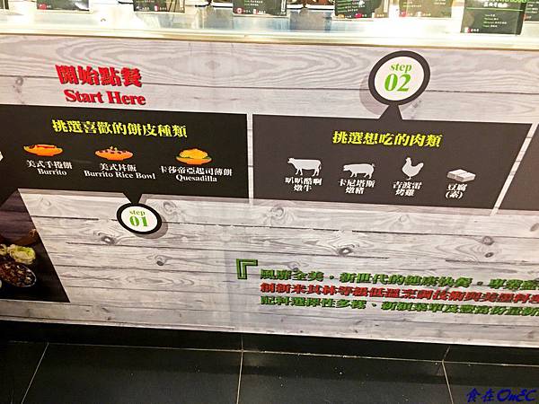 1.選擇想要什麼方式的餅皮: 美墨式手捲 Buritto 、 美式丼飯Buritto Bowl or 美墨式起司薄餅 Quesadilla