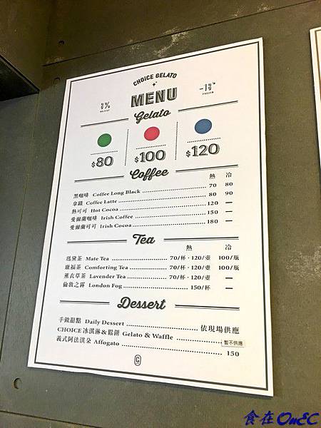♨【 CHOiCE Gelato 】價位表以顏色標籤分別,綠120/紅100/藍120