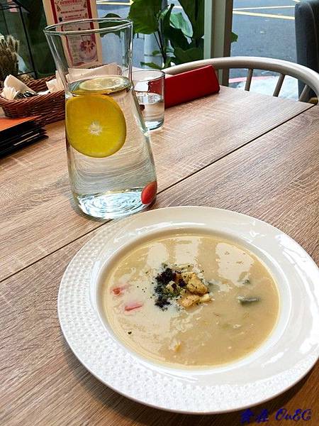 許多蔬菜與濃湯的結合,不會讓人喝完湯有很膩的感覺。