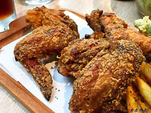 醃過的雞翅炸起來顏色較深,味道很夠原味吃就很夠味