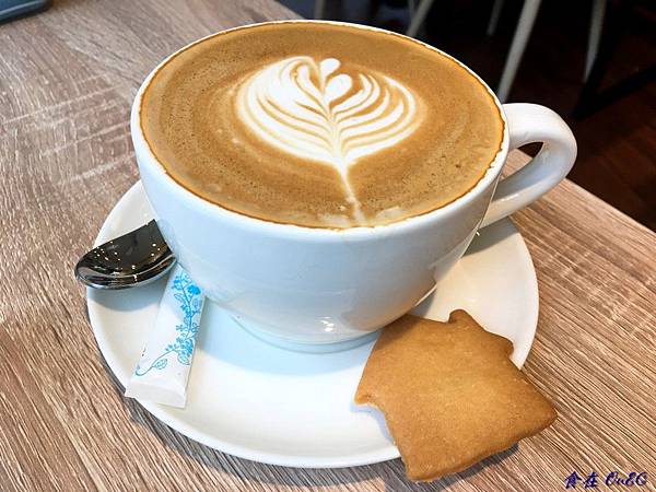 簡單的拉花還給你搭配一塊小餅乾,so cute!