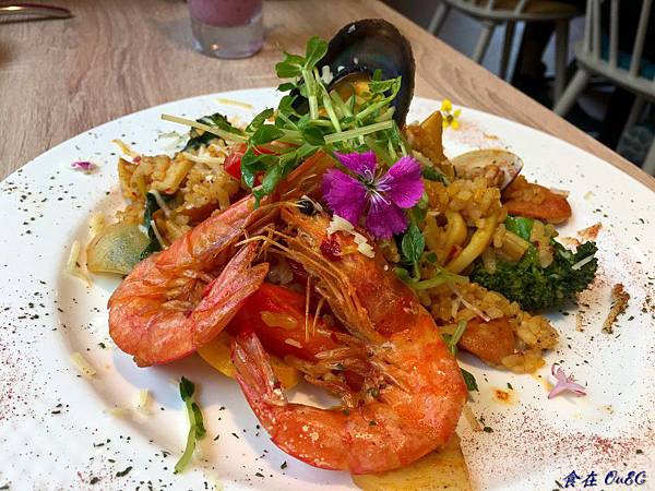 不僅有滿滿的海鮮(大蝦、花枝、淡菜及蛤蜊)