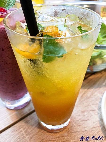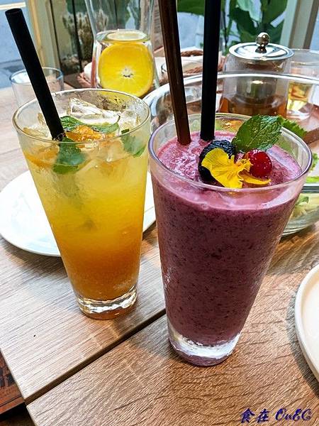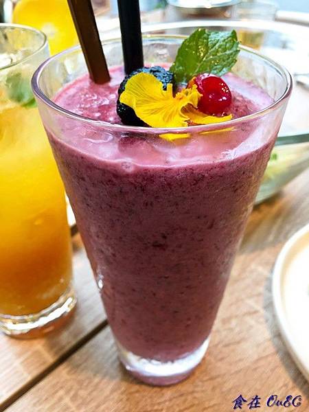 ♨飲品- 芒果泡泡蘇打(左)、野莓堅果健康果昔(右)