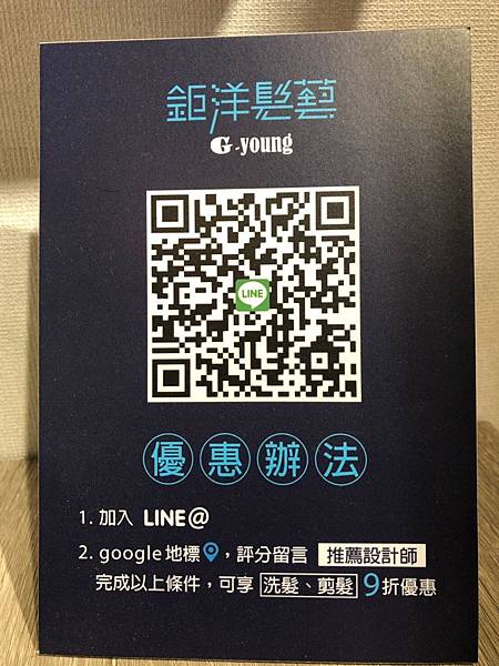 現在完成以上動作洗髮剪髮都可以9折喔!