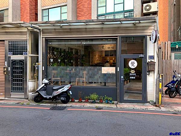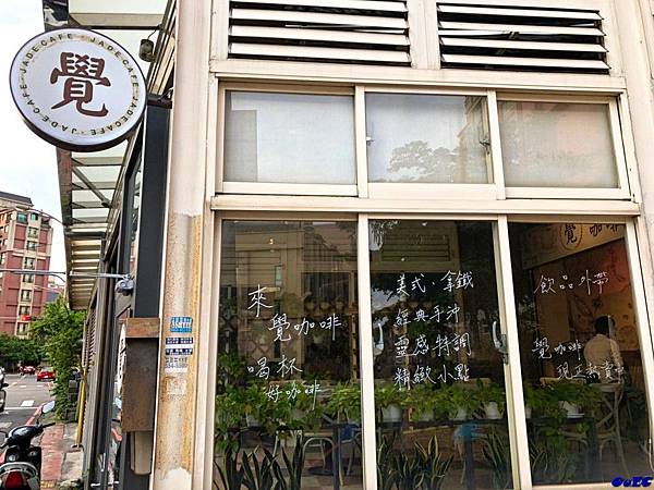 ♨在巷弄中的"覺咖啡 Jade Cafe"不算特別顯眼,透明的玻璃窗隱約可以看到內部裝潢。