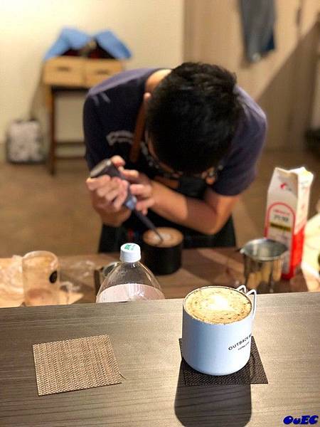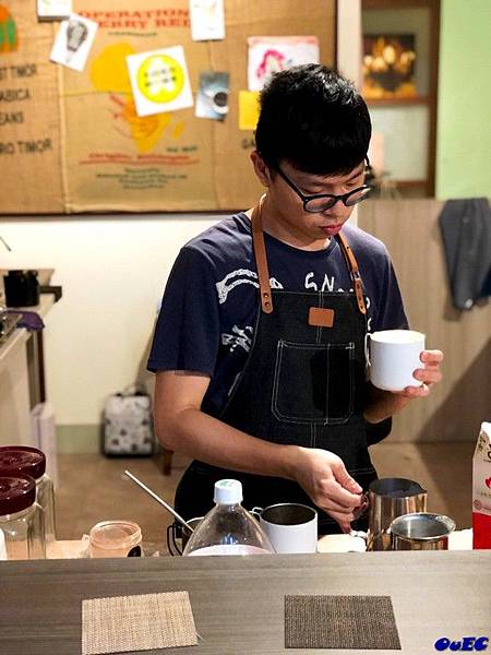 今天我的特調味道偏向於摩卡,但尾韻又帶點鹹味,使用台灣可可豆香純風味不像傳統摩卡的甜膩,反而是越喝越順口