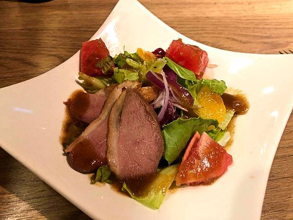 酸酸甜甜的醬汁沾著蔬菜和柚子番茄非常親爽好吃,鴨胸也有一定的厚度