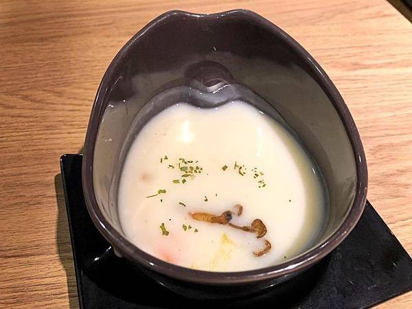有點像蒸蛋湯的感覺,上面的有點像海鮮羹的感覺,下面則是蒸蛋