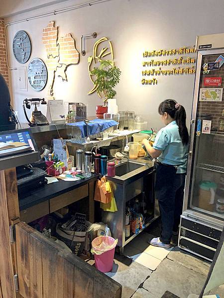 ♨ 一進門的櫃台/製作飲品區同樣也適用木質裝潢,真的很有泰感。