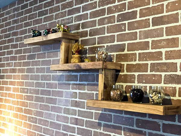 ♨ 用木板條釘在牆上,是現在許多店家或是家裡美化會用的工法