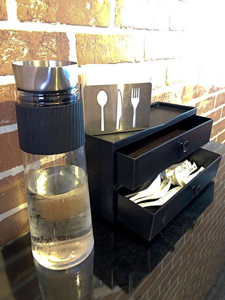 ♨一上桌服務員就送上冰水,而餐具都放在旁邊的櫃子裡,有需要就可以打開拿喔!