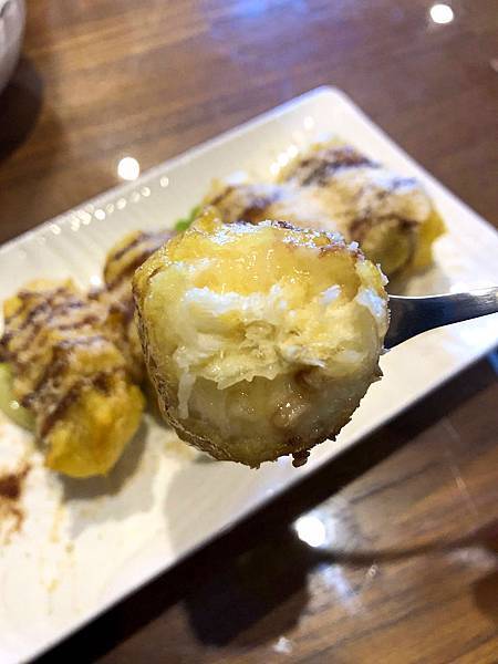 外皮裹著薄薄的椰味粉漿,因高溫油炸的關係,並不會吸油