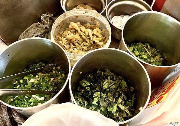 蒜苗、九層塔、香菜還有滿滿的酸菜,看到都流口水了![]()