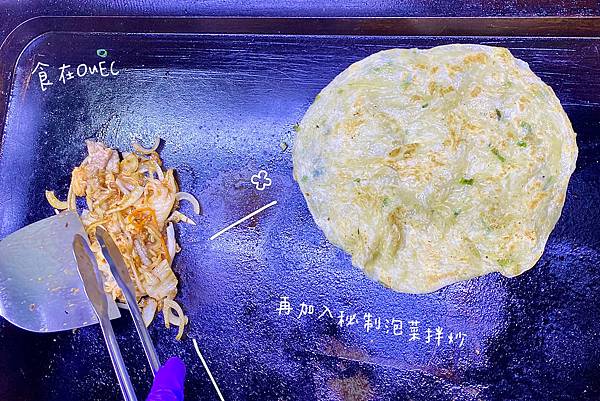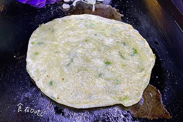 感覺質地跟一般蔥油餅不太一樣,比較偏向蔥油派或是捲餅的感覺
