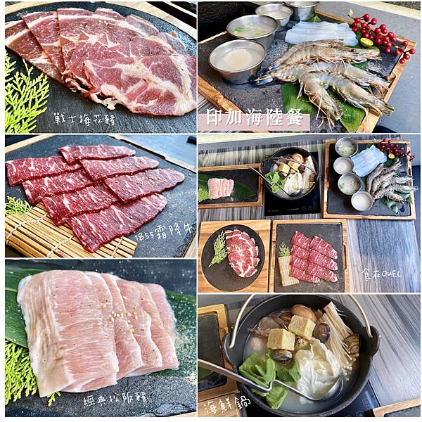 有3種肉品-1855霜降牛、戰士梅花豬 及 經典松阪豬