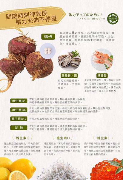 嚴選5種瑪卡萃取,結合豐沛營養,有助於調節生理機能、滋補強身、增強體力。