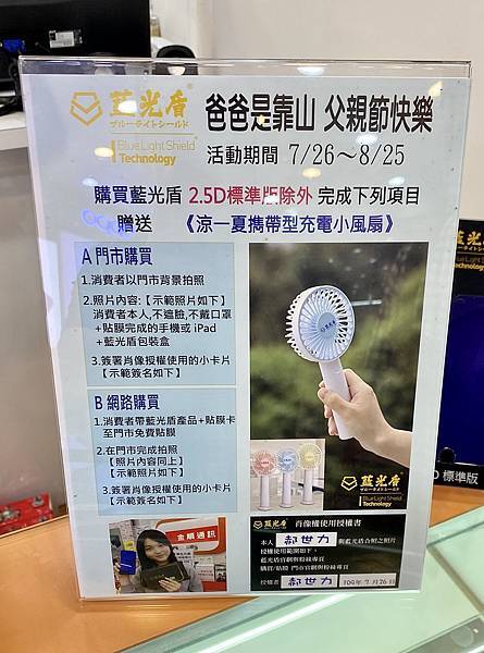 店員推薦我使用藍光盾 (現在父親節檔期還有贈風扇的活動)