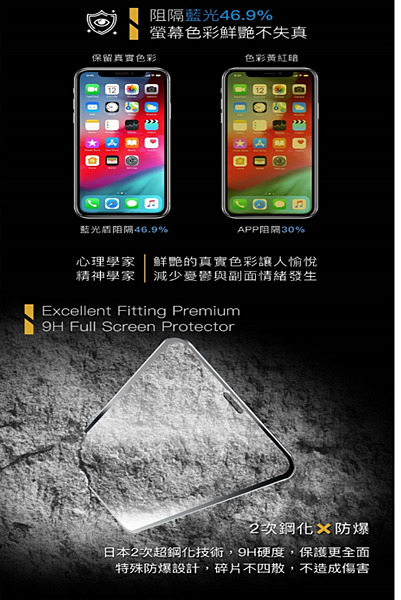 ◆藍光盾使用日本頂級9H超鋼化玻璃,並經過2次強化,堅固耐用。