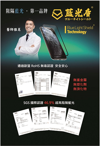 是唯一通過歐盟無毒法規,確認無重金屬,無塑化劑,使用藍光盾不會將毒素吃下肚。