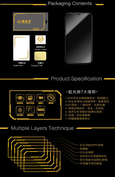 外型與手機面板相同,顏色也相同。藍光盾最暢銷的種類。