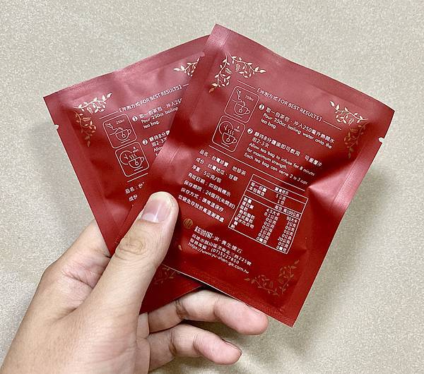 🌱🌱🌱 茶包包裝也以喜氣的酒紅色為包材