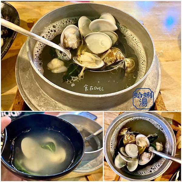 滿滿的飽滿蛤蜊加上幾片九層塔和酒提味