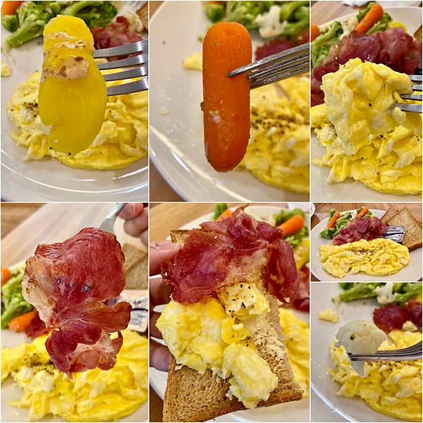 全麥吐司+蔬菜+煎培根+歐姆蛋