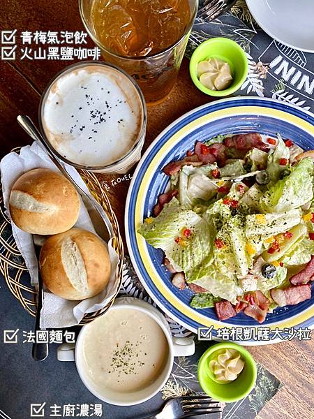 ☑☑☑ B. 風味套餐 +129元 (125元飲品+法國麵包+主廚濃湯)