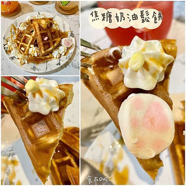 分量不算少的鬆餅,淋上焦糖和鮮奶油點綴
