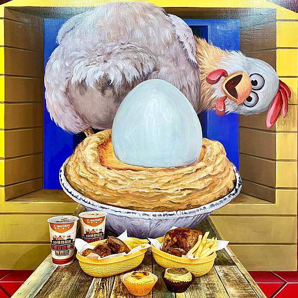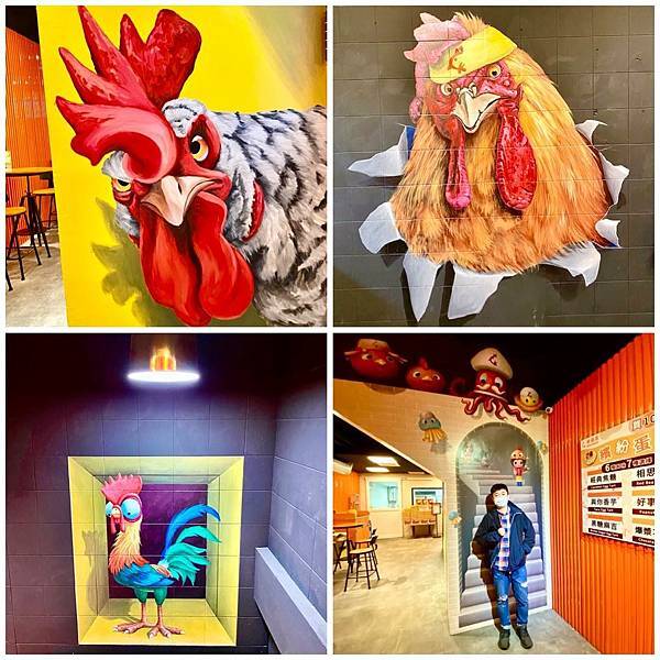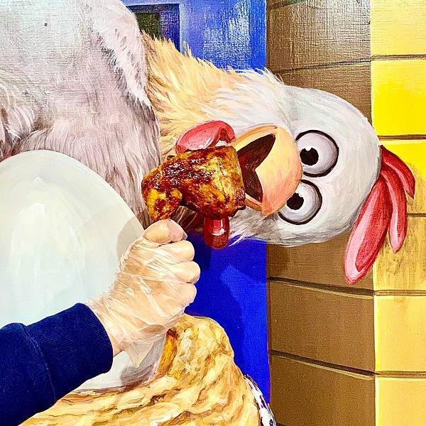 🍗 一樓用餐區就有很多關於雞為主題的3D壁畫