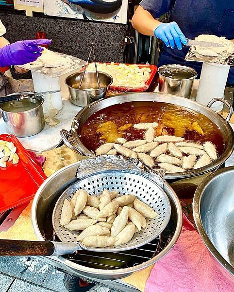 🍤 前面的兩個隊員負責製作及低溫油炸定型