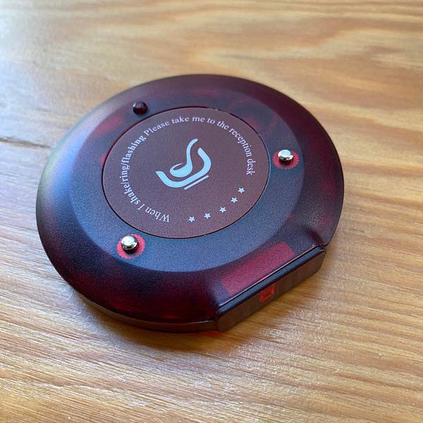 櫃台會給你一個震動器,餐點好了之後就 發振動及發出提示音