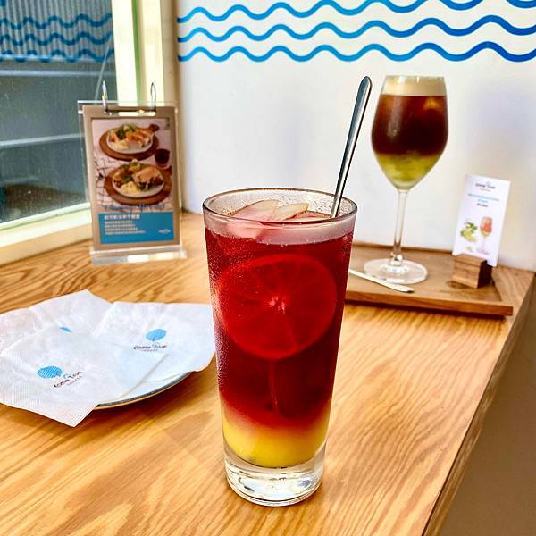 紅黃漸層飲料還有檸檬貼杯外觀很可以