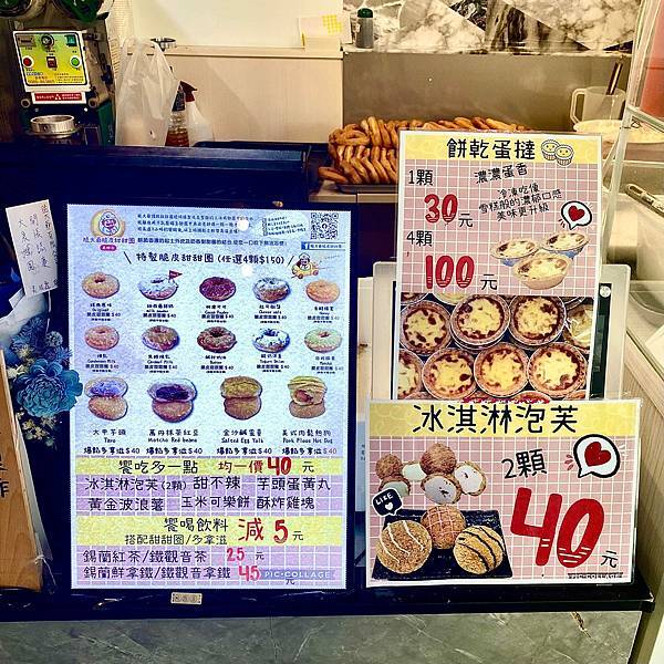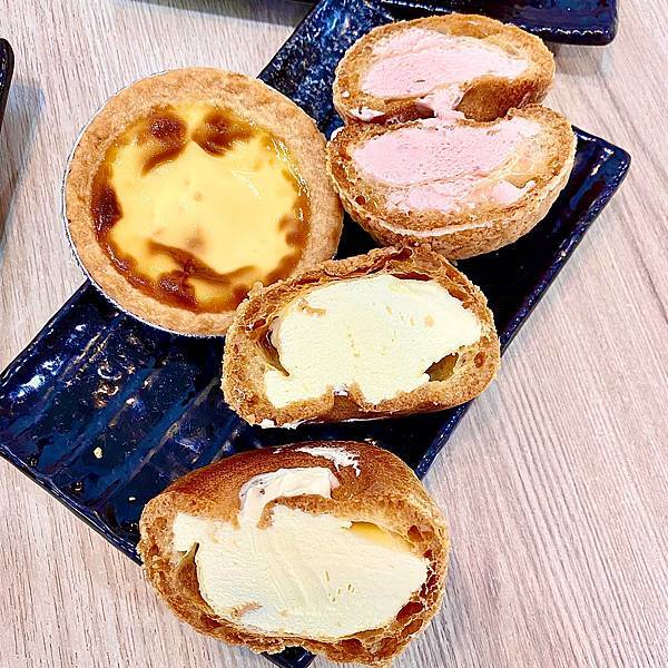 🥯冰淇淋泡芙(40/兩顆)、餅乾蛋塔(30)
